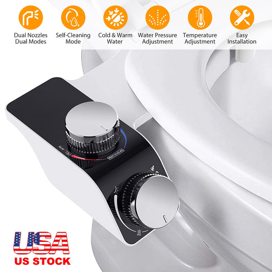 Bidet Attachment Non-Electric Fresh Water Bidet Sprayer Toilet Seat Attachment with Self Cleaning Dual Nozzles Cold Warm Water Temperature Pressure Co