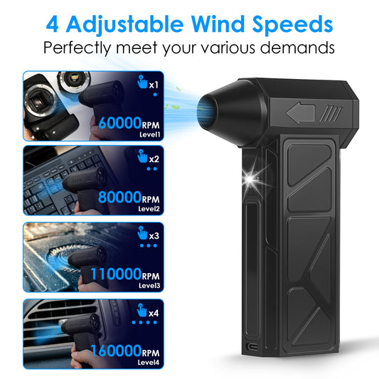 160,000RPM Air Duster – Cordless Rechargeable Blower with LED Light & 4 Speeds