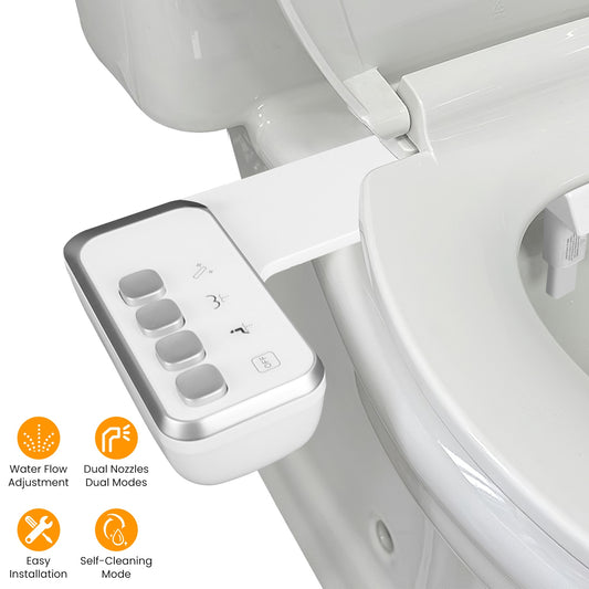 Bidet Attachment for Toilet Non-Electric Fresh Water Bidet Sprayer Toilet Seat Attachment with Dual Nozzles Water Flow Control Self-Cleaning Mode
