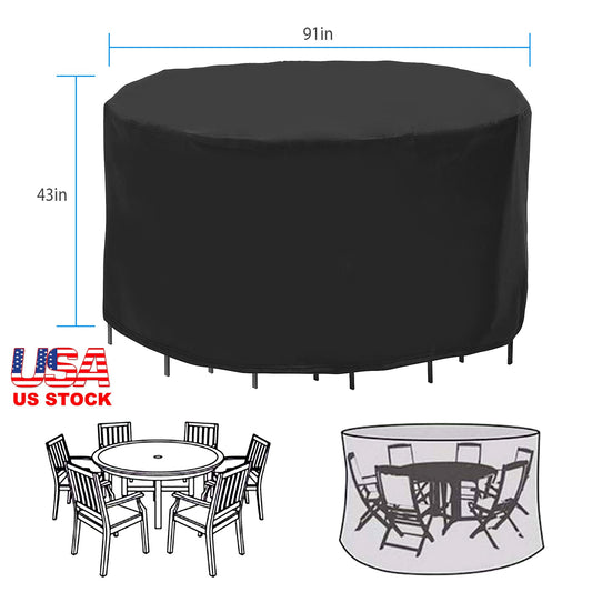 91x43in Circular Table Cover 6-Seat UV Water Resistant Outdoor Furniture Protector For Small Round Table Chairs Set