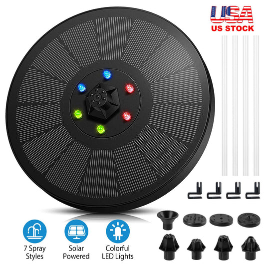 Solar Powered Fountain Pump Floating Bird Bath Pond Pump w/ LED Lights 7 Nozzles For Aquarium Garden Backyard Pond Pool Outdoor