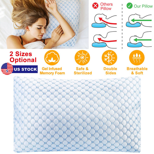 Cooling Memory Foam Pillow Ventilated Soft Bed Pillow w/ Cooling Gel Infused Memory Foam Heat Moisture Reducing Cooling Fiber Breathable Machine Washa