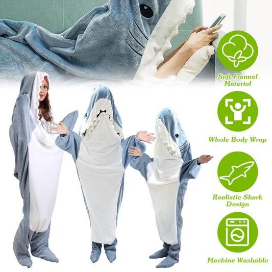Wearable Shark Sleeping Bag Shark Onesie X-XXL Size Soft Comfortable Flannel Blanket With Zipper Suitable For Adult Children Height 4.2FT to 5.5FT