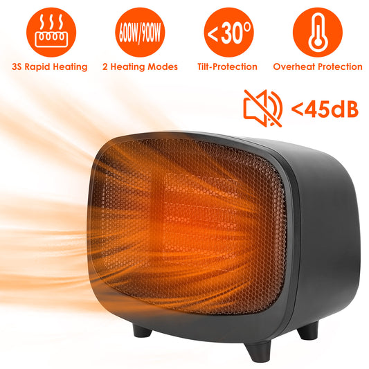 Small Electric Space Heater Portable Mini PTC Ceramic Space Heater Fan w/ Tip-Over and Overheat Protection for Bedroom Office Desk Indoor Use