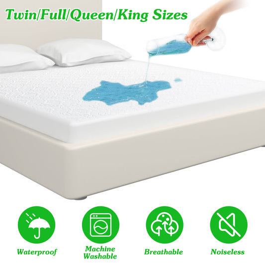 Queen Size Waterproof Mattress Protector Breathable Soft Cotton Mattress Pad Cover With Elastic Deep Pocket Up To 11in Noiseless Machine Washable Bedd