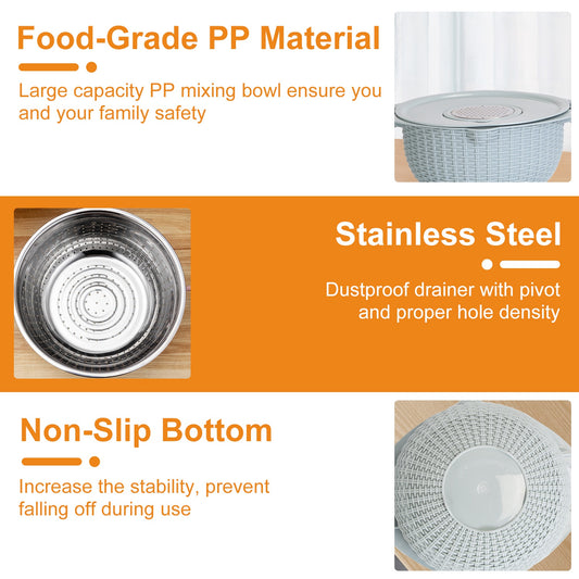 Multifunctional Mixing Bowl with Lid Set 3 Replaceable Graters Food Strainer and Colander Fruit Vegetable Washing Basket Stainless Steel