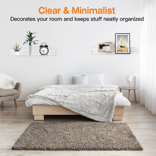 4 Pack 15In Clear Acrylic Floating Shelves Bookshelves with 2 Mounting Ways Wall Mounted Organizer for Kitchen Bathroom Study Living Room Bedroom Offi