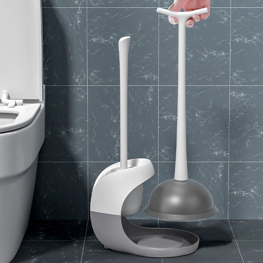 Toilet Plunger and Brush Combo Set with Ventilated Holder 2 in 1 Toilet Cleaning Tools Set with Caddy Stand for Bathroom