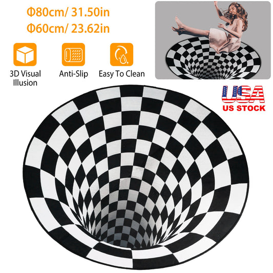 3D Visual Floor Area Mat Anti-slip Illusion Rug Doormat Round Living Room Carpet Mat