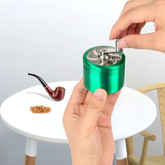 Herb Spice Tobacco Grinder 2.5-inch 4-Piece Zinc Alloy Hand Crank Crusher Kitchen Mill with Pollen Scraper