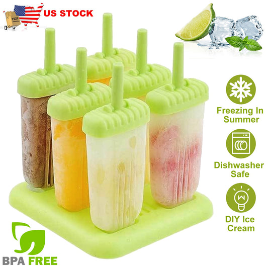 6Pcs Popsicle Molds Reusable Ice Cream DIY Ice Pop Maker Ice Bar Maker Plastic Popsicle Mold For Homemade Iced Snacks