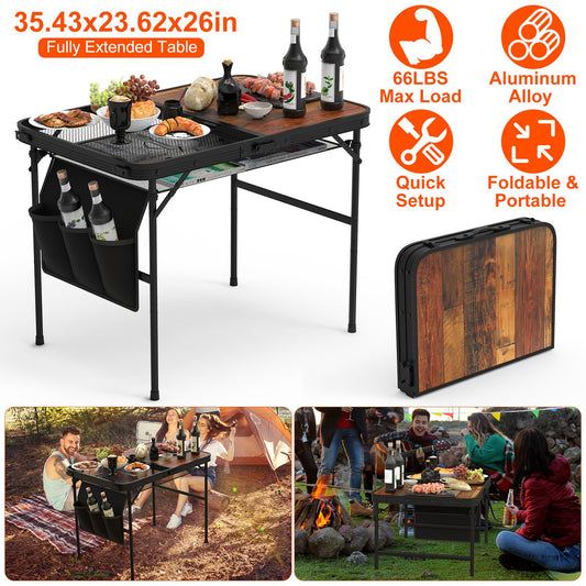 35.43x23.62x26in Foldable Camping Table Collapsible Picnic Aluminum Alloy Grill Stand 66LBS Max Load Height Adjustable BBQ Table with Adjustable Heigh