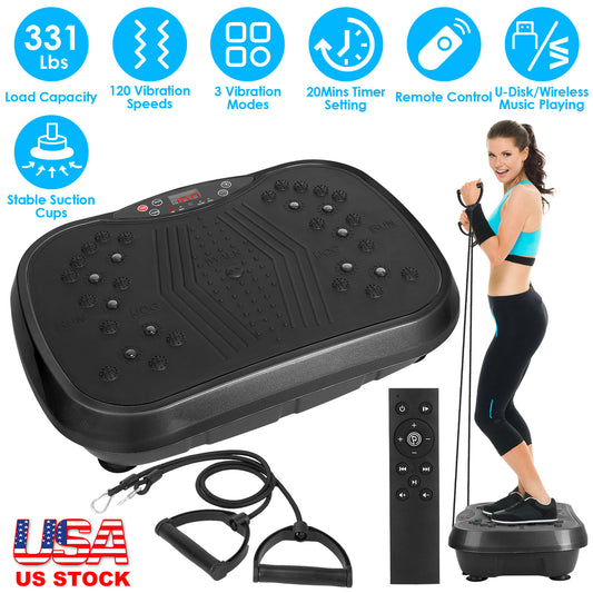Vibration Exercise Machine Vibrating Plate Platform Whole Body Fitness Vibration Workout Equipment with 120 Speeds 1-20Mins Timer Resistant Bands Remo