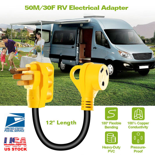 iMounTEK RV Electrical Dogbone Converter 50 AMP Male To 30 AMP Female Adapter Cable 12inch w/ Handle