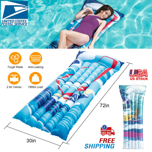 72" Inflatable Pool Float Raft Float Lounge Swimming Pool Mat with Pillow Air Mat Mattress for Adults & Kids