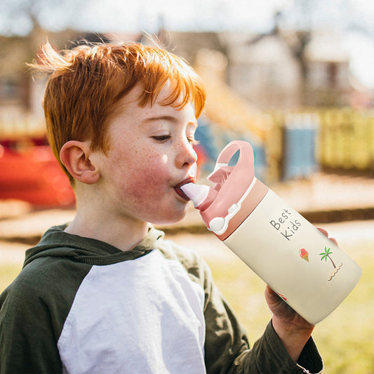 13.5Oz Insulated Stainless Steel Water Bottle Leak-proof Bottle for Kids with Straw Push Button Lock Switch Sports Water Bottle for Toddlers Boys Girl