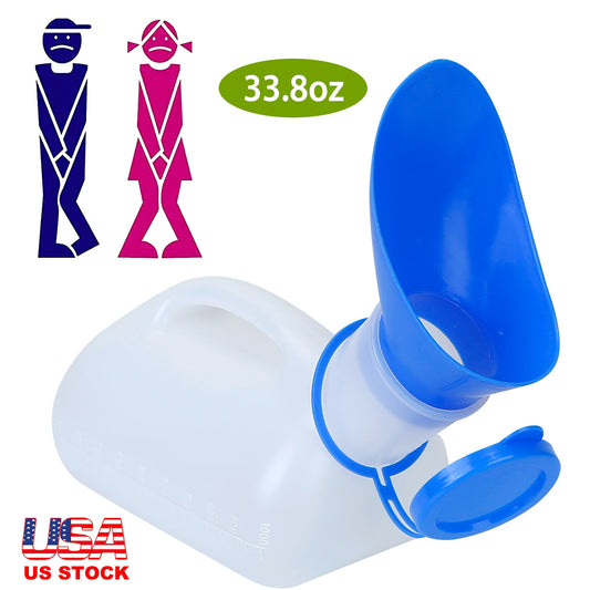 Unisex Potty UrinalÊBottle 1000ML/33.8OZ Adult EmergencyÊUrinal Device Portable Male Female Toilet w/ Lid Funnel For Car Camping Travel Hospital Outdo