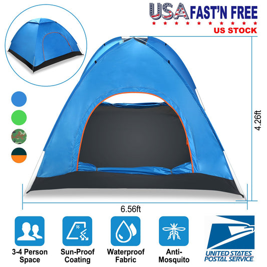 4 Persons Camping Waterproof Tent Pop Up Tent Instant Setup Tent w/2 Mosquito Net Doors Carrying Bag Folding 4 Seasons for Hiking Climbing Adventure F