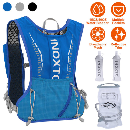 Sport Hydration Vest Running Backpack with 15oz 50oz Water Bladder Adjustable Strap Storage Bag for Trail Running Marathon Race Hiking