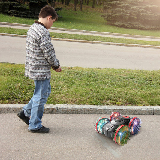 2 In 1 Amphibious RC Car Waterproof Stunt Car with Wrist Controller 4WD 360¡ Rotating Gesture Car with RGB Lights for Kids Aged 6+ Years Old Double-si