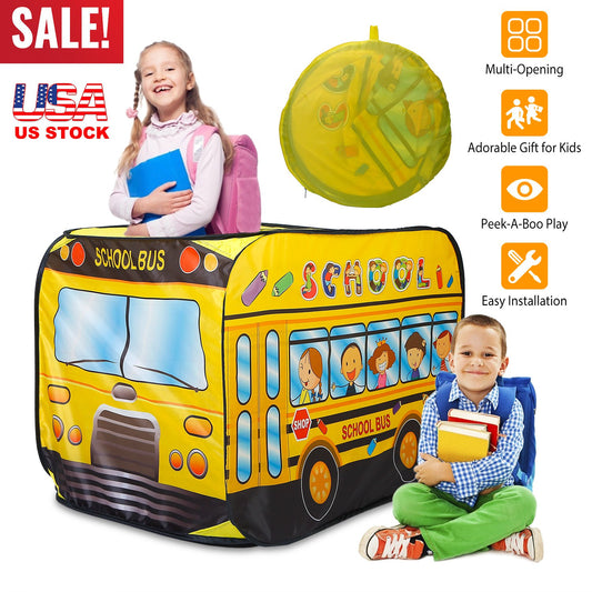 Kids Play Tent Foldable Pop Up School Bus Tent Portable Children Baby Play House W/ Carry Bag For Indoor Outdoor Use