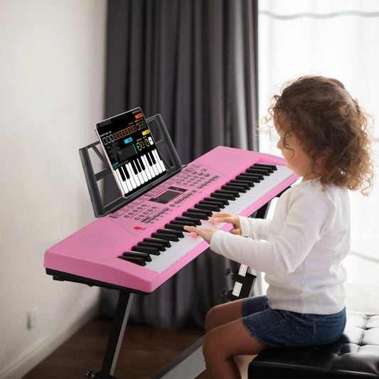 61 Keys Digital Music Keyboard Electric Piano Electronic Musical Instrument Kids Learning Keyboard with Microphone Stand for 3-12 Year Old Kids Girls