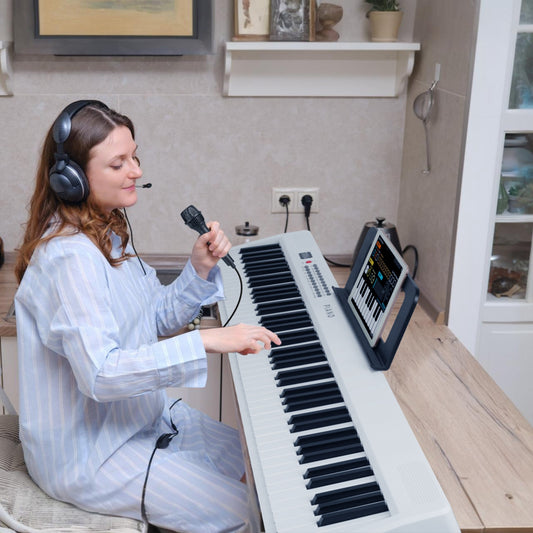 Folding Piano Keyboard 88 Keys Rechargeable Full Size Semi Weighted Piano Digital ElectronicÊPiano with LCD Screen Carry Bag Mic Sheet Music Stand Sti