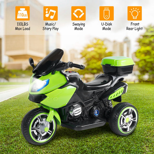 3 Wheel Motorcycle For Kids Aged 1-6 Battery Powered Ride On Toy Electric Tricycle w/Music Story Broadcasting Headlight Rear Light Forward Reverse