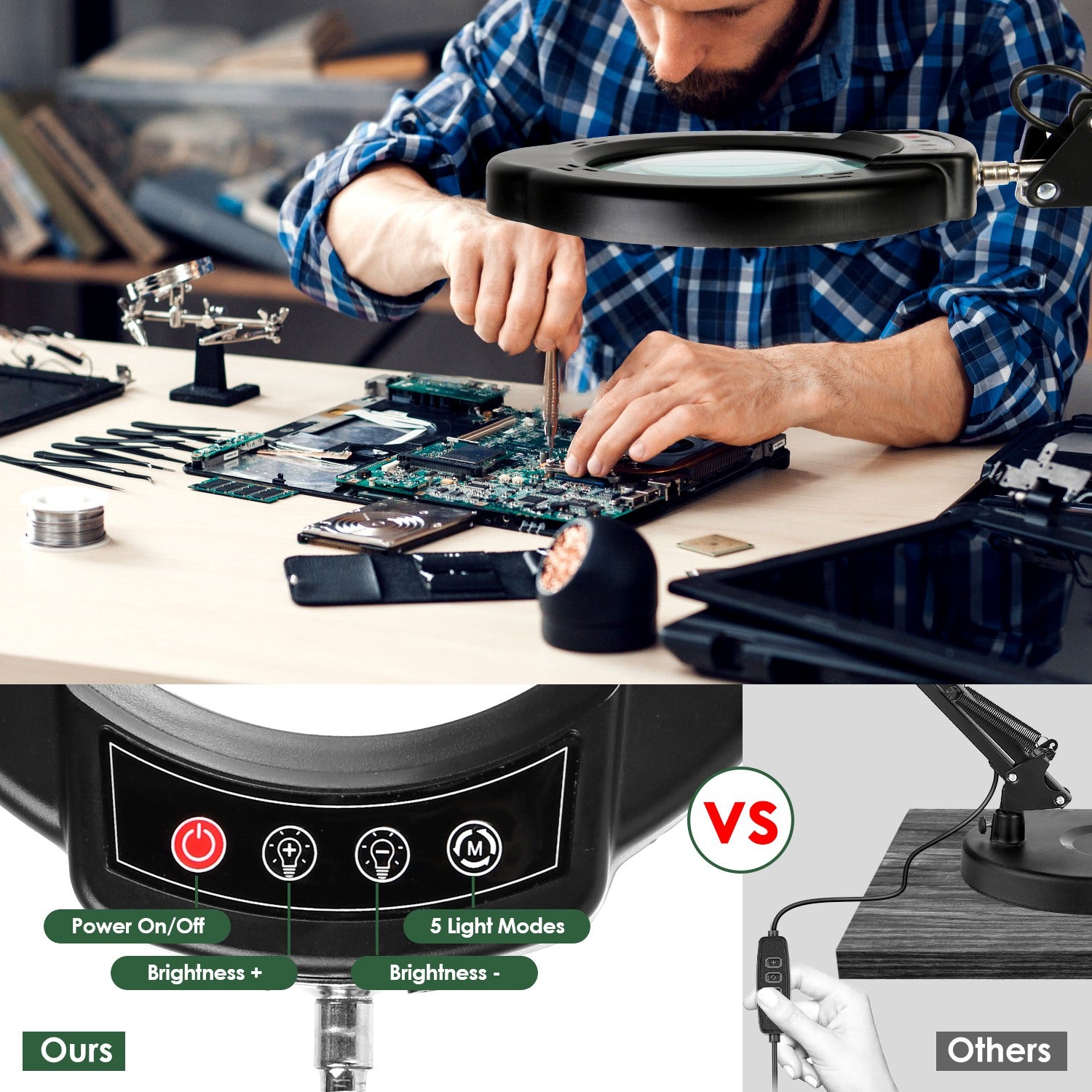 10X Magnifying Lamp – Adjustable Light, Clamp Stand, 5 Color Modes