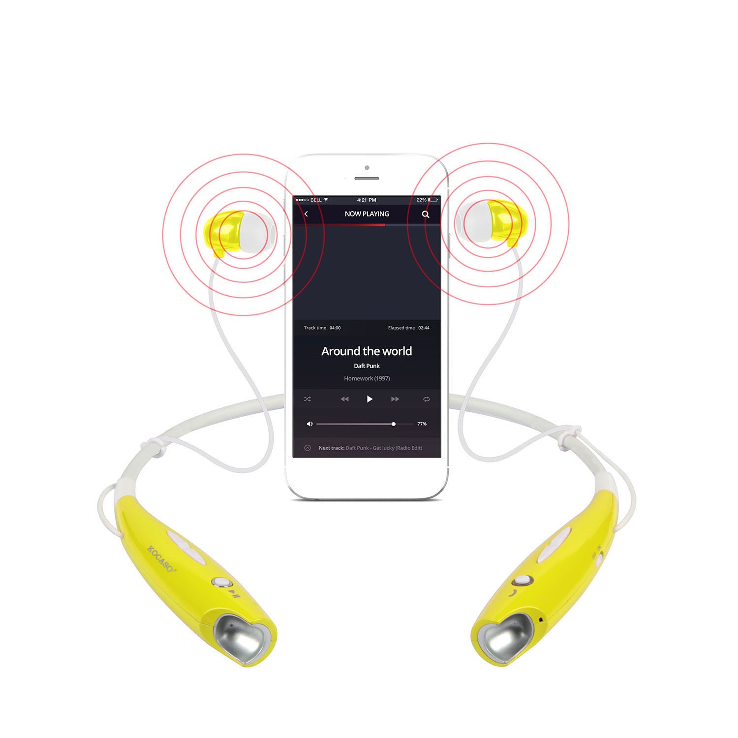 KOCASO Wireless Sports Stereo Hands Free Headset for Phone and Tablet in Yellow