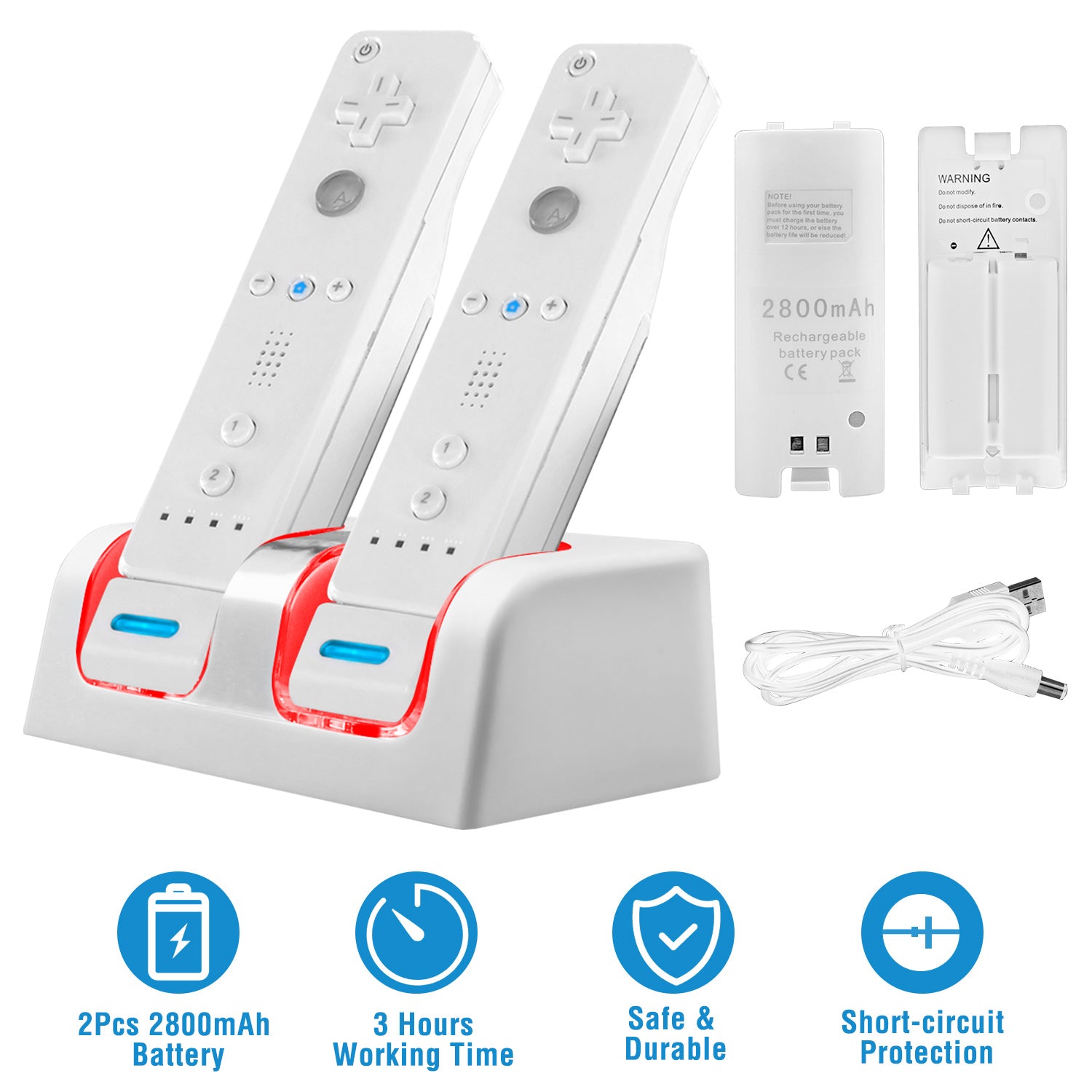 For Wii Remote Controller Charger Dual Charge Dock with Two 2800mAh Rechargeable Batteries