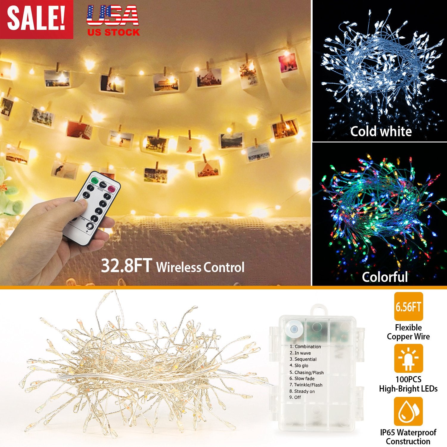 2M 100 LED Fairy String Lights Copper Wire w/Remote Control Party Xmas Decore Lights