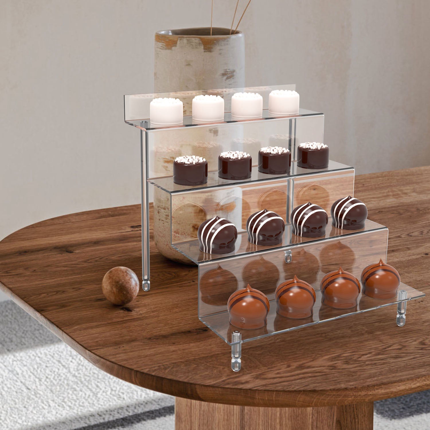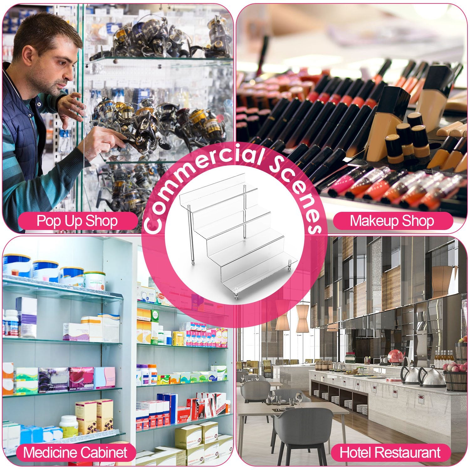2 Pack 4 Tiered Acrylic Riser Display Shelf Display Stands For Products Clear Figure Display Shelf for Pops Action Figure Collectibles Souvenir Desser