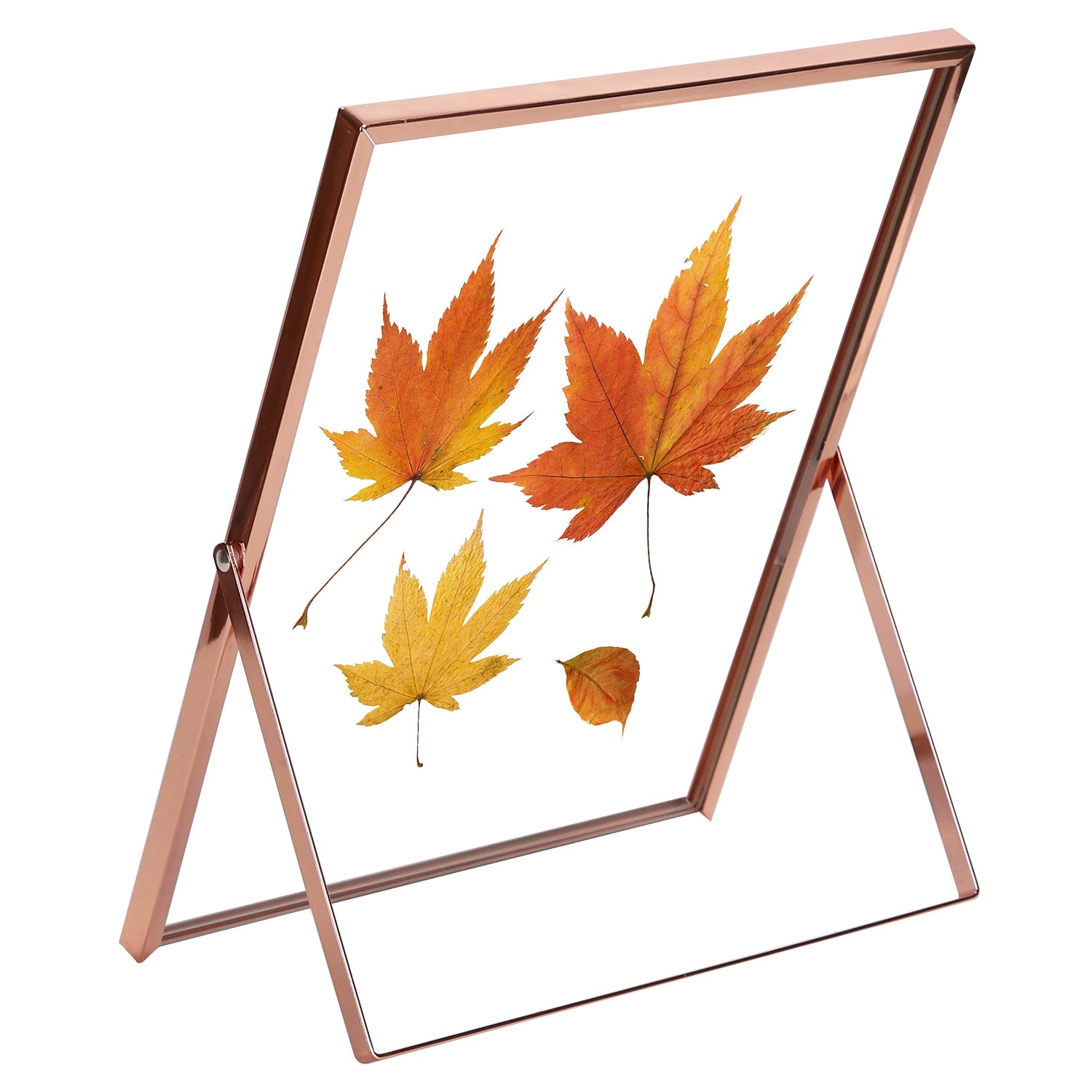 2Pcs Standing Rose Gold Metal Picture Frames 5x7IN 8x10IN Vertical Tabletop Floating Photo Frame Double-Glazed Glass Pressed Flower Frame for Home Dec