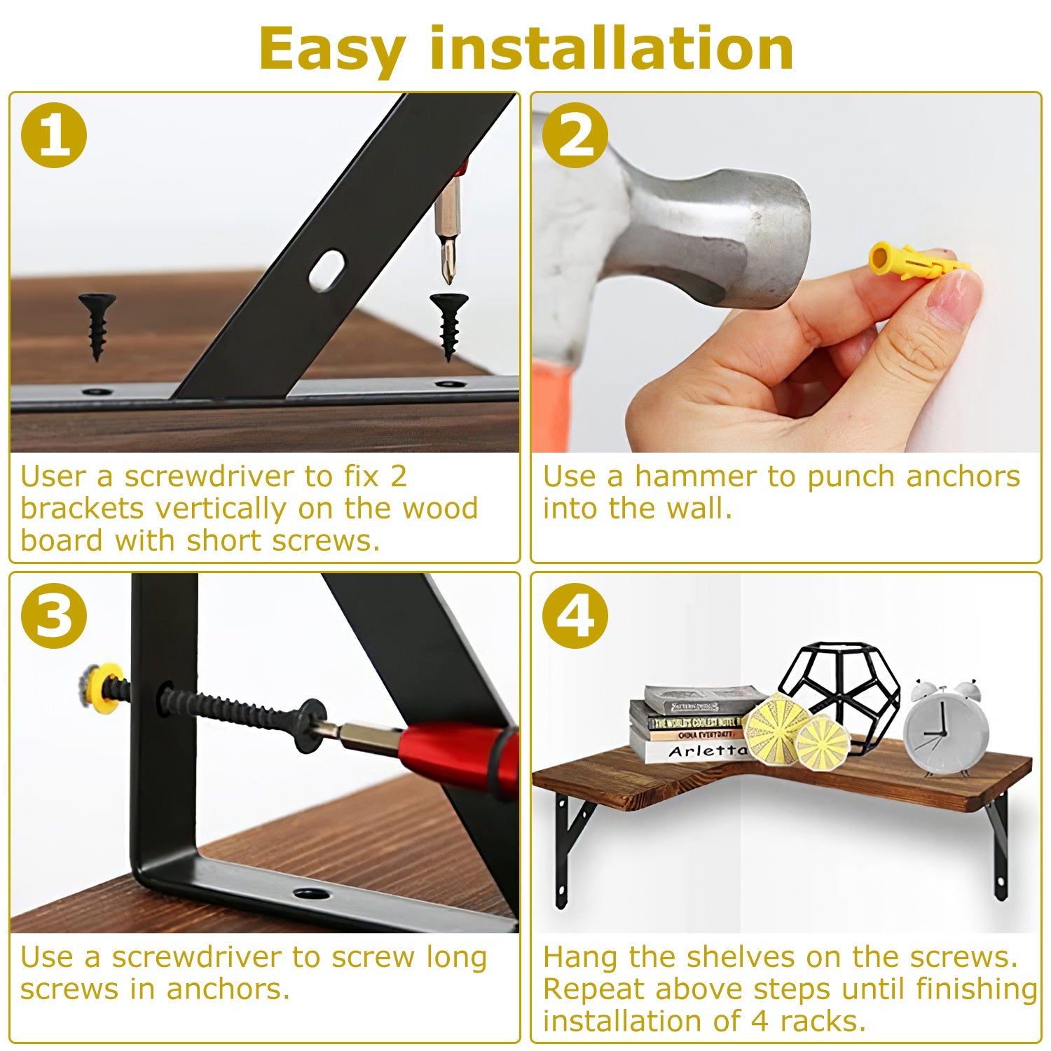 4Packs Corner Floating Shelf Wall Mount Display Storage Shelf Organizer Wood Metal Bedroom Living Room DŽcor