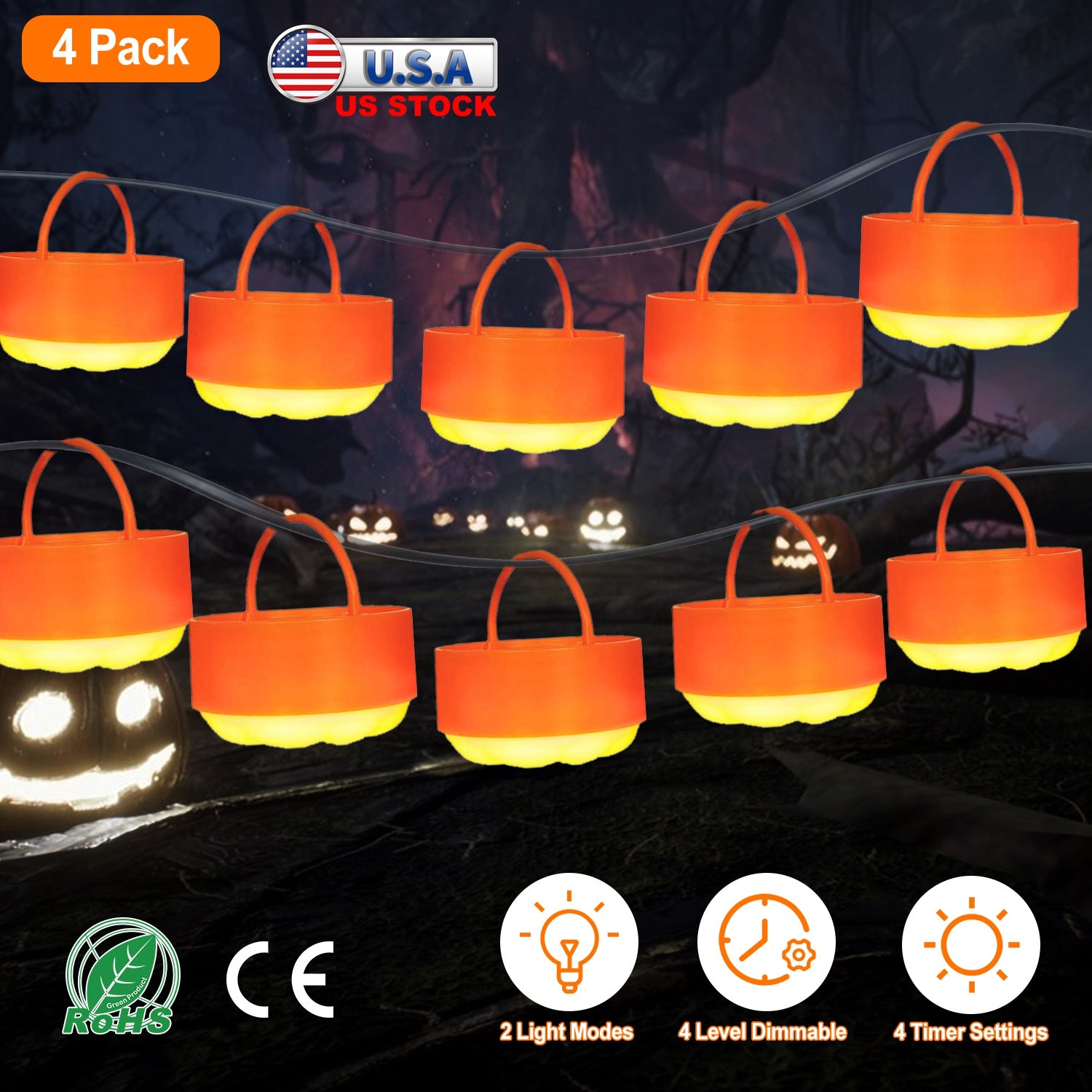 Halloween is coming! With its cute pumpkin shape, our 4 Halloween decorative lights add a festival atmosphere for your house. Combined with flamless candle or steady warm yellow lantern, these battery operated pumpkin lights with folding hook offers diverse decorating ways. Moreover, the remote control provides much convenience for you with 4 timer settings and 4 levels of brightness. You can also tap the light to switch light modes, convenient and easy. An ideal holiday ornament for Halloween decorations for home, kitchen, bedroom, bathroom, patio, yard, garden, pathway and so on.