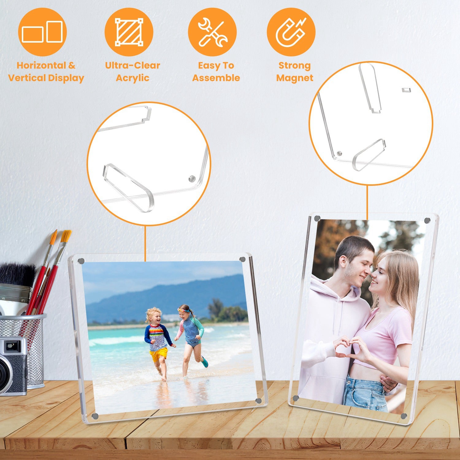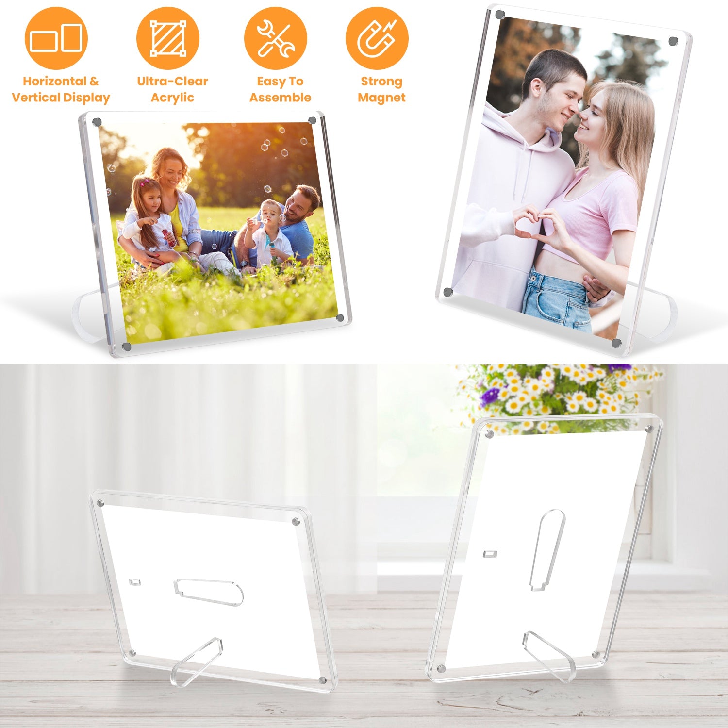 4Pcs Acrylic Photo Frames 5x7In Photo Display Vertically Horizontally Free Standing Desktop Picture Frame High Definition Magnetic Frameless Photo Hol