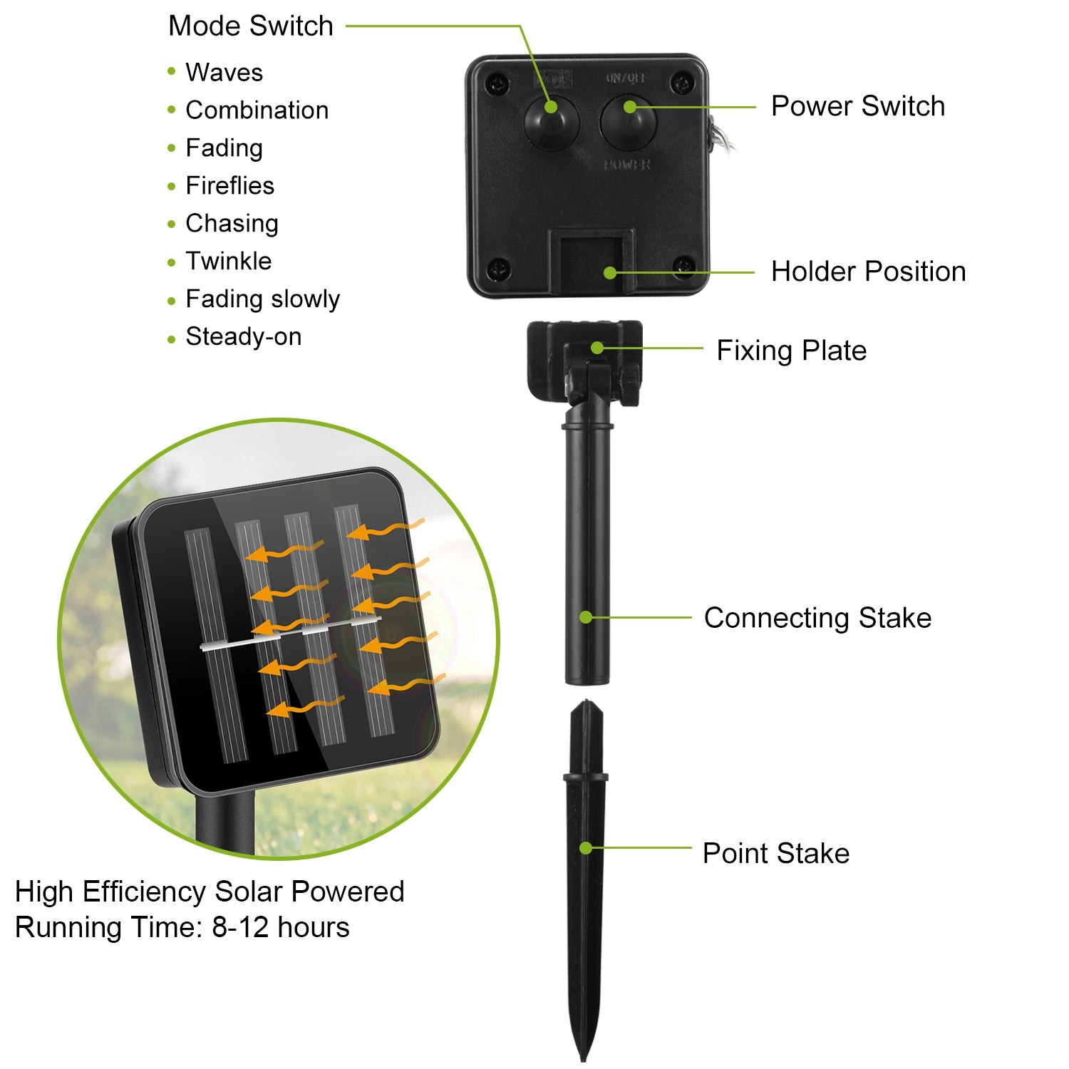 Still worried that your party scene has no atmosphere and dull? Add some fairy lights to your garden and backyard with our Solar- powered string lights! It has 8 working modes and 100LED lights, 39.37 feet at length. Coupled with its great waterproof capability and flexibility, this rope lights is suitable for indoor and outdoor decoration, making your party sparkling at night.