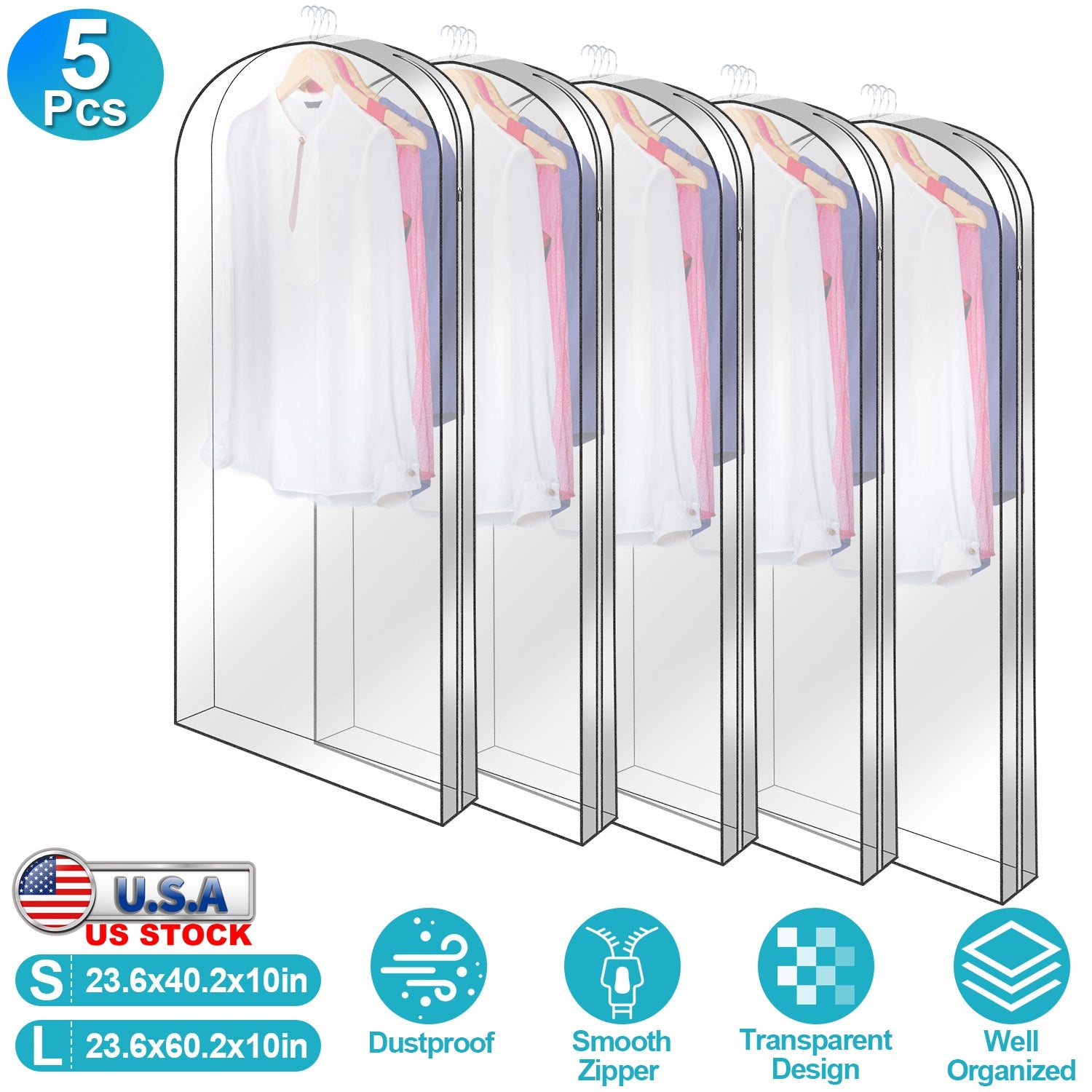5 Pack 60In Garment Bag for Hanging Clothes Dustproof Waterproof Hanging Clothes Storage Bag Clear Transparent Suits Cover for Sweater Jacket Coat Dre