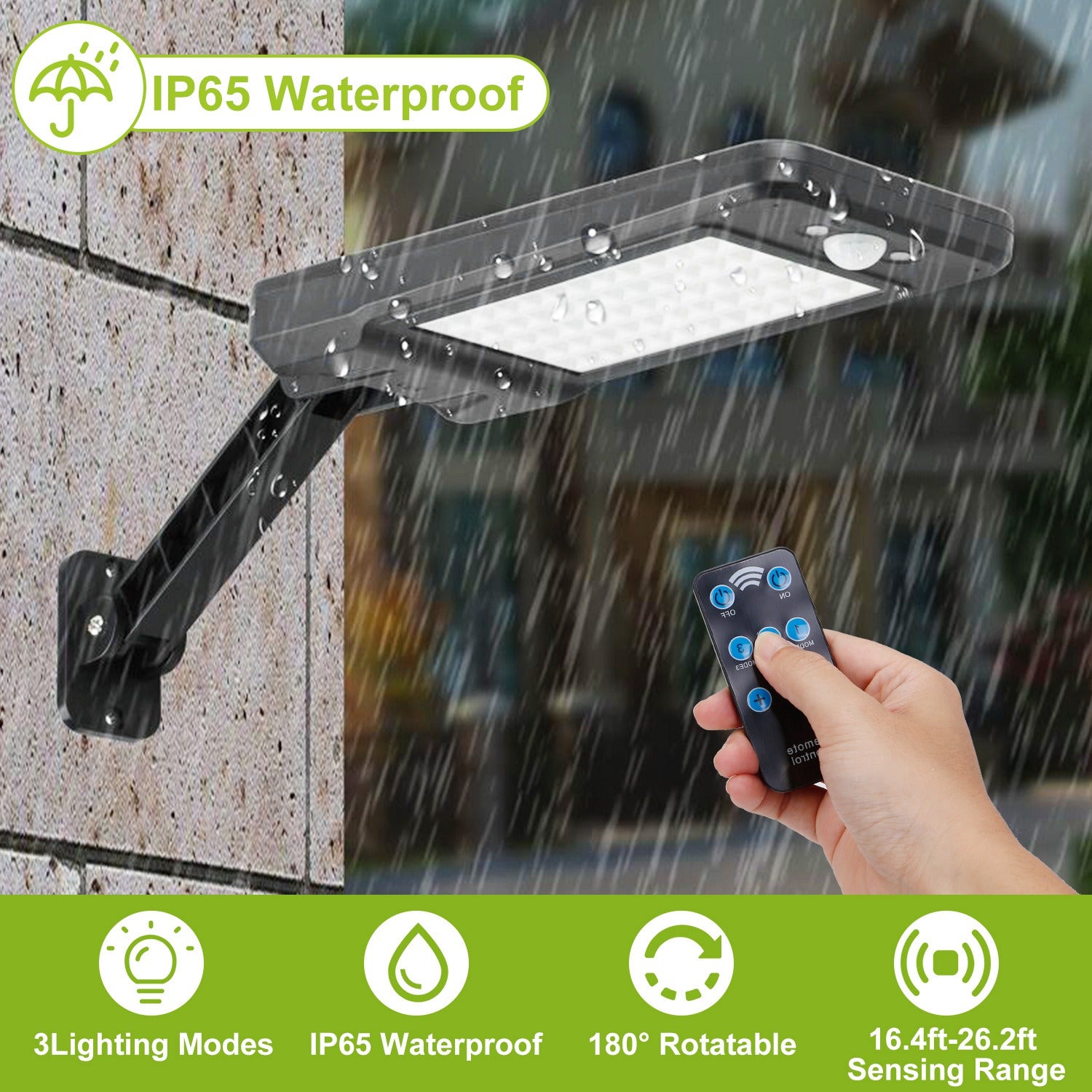 Solar Wall Light Outdoor 60LEDs PIR Motion Sensor Remote Control Wireless Lamps IP65 Waterproof Lighting for Garage Front Door Garden Pathway