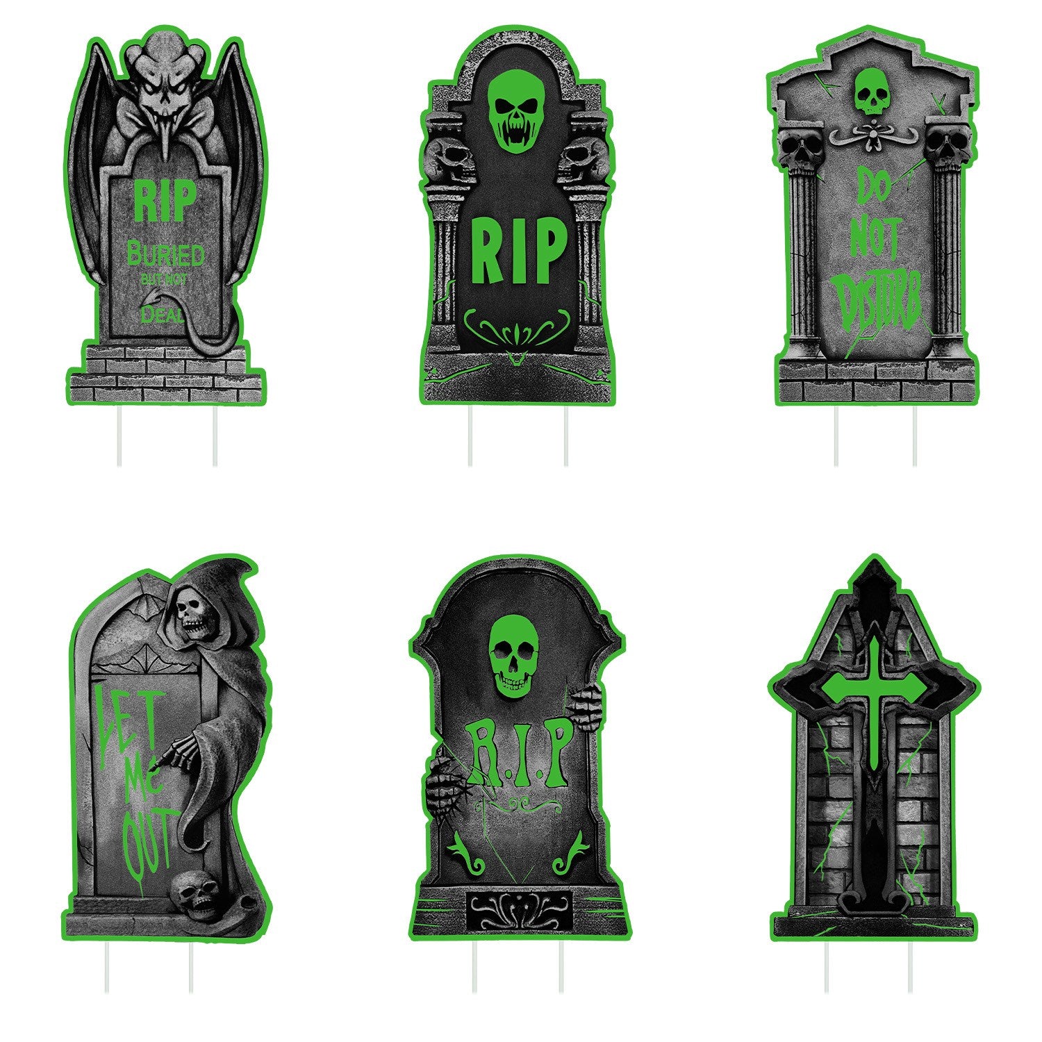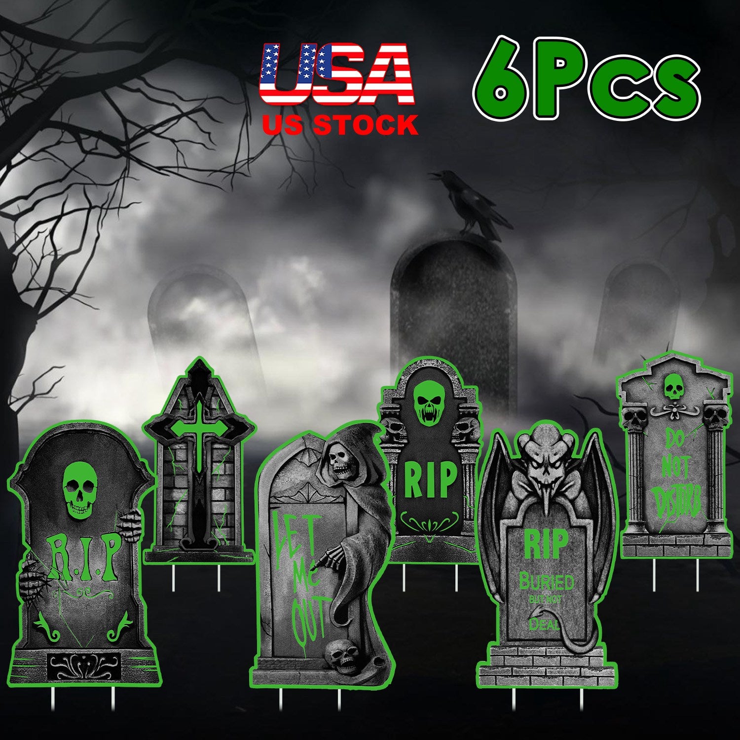 Halloween Tombstone Yard Sign Decorations 6Pcs Glow in the Dark Halloween RIP Tombstone Fluorescence Lawn Sign with 12 Stakes for Haunted House Garden