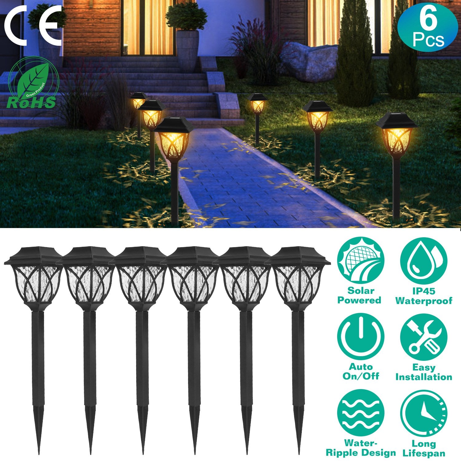 6Pack Solar Powered Stake Light Outdoor Decorative Landscape Lamp IP45 Waterproof Auto On Off Outdoor Light for Pathway Garden Yard Patio