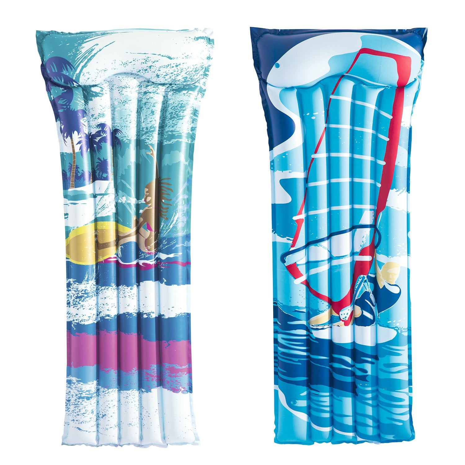 Drive away hot summer and enjoy a cool, peaceful and wonderful time on water with our refreshing inflatable pool float Raft! Adopting premium 0.19mm (0.007in)-thickness vinyl plastic materials and reinforced edges, it is sturdy, scratch-proof, abrasion-resistant and easy to clean. After inflation, its around 72inches x 30inches (L x W) dimension can universally fit both men and women, and you can place your head on the air pillow comfortably and rest your arms on the air armrest lazily. And its unevenly-designed surface can hold you in place safely while floating on water.