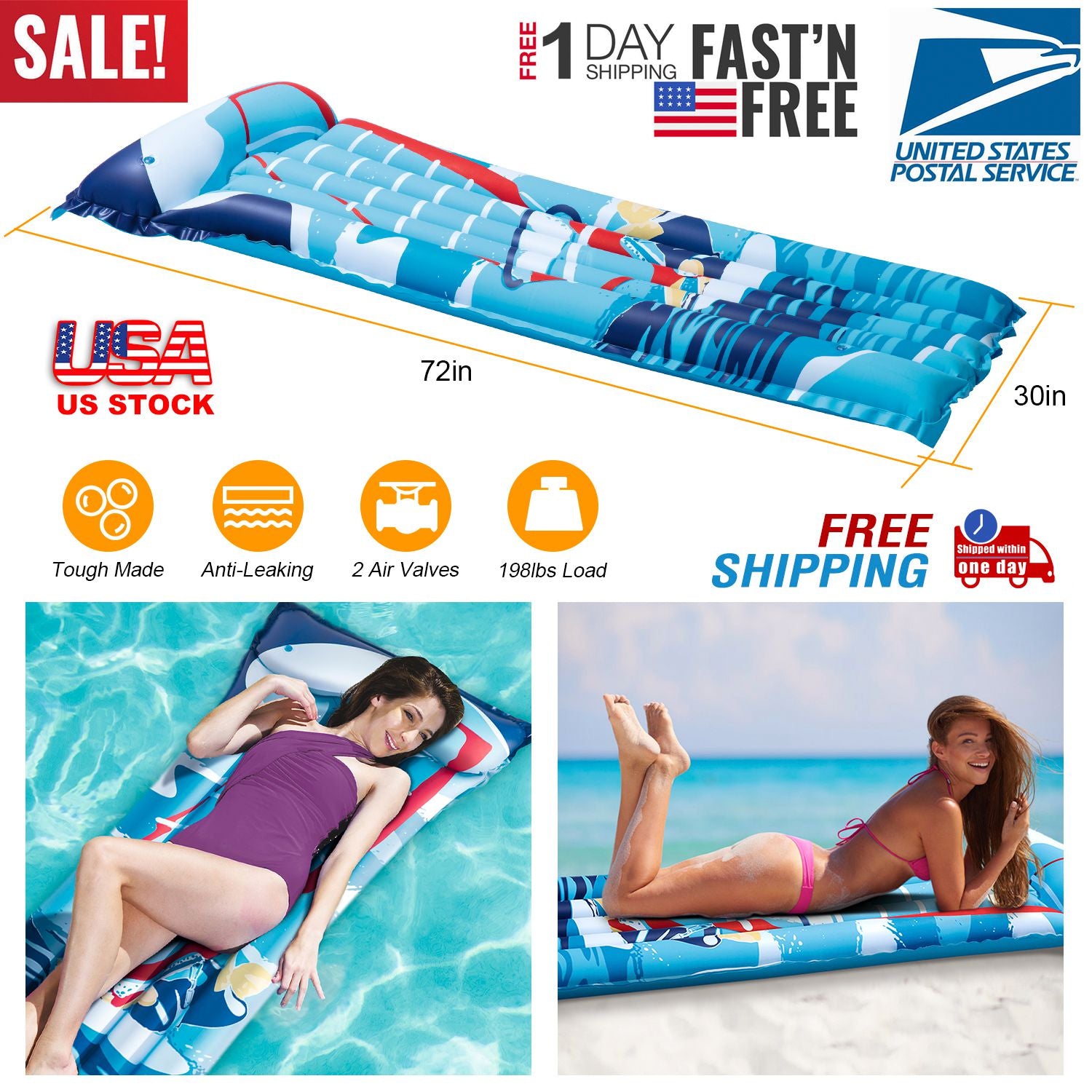 72" Inflatable Pool Float Raft Float Lounge Swimming Pool Mat with Pillow Air Mat Mattress for Adults & Kids