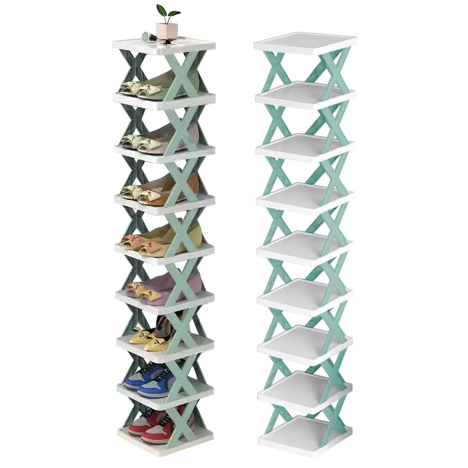 9Tier Narrow Entryway Shoe Rack Plastic Vertical Shoe Organizer Space Saving Free Standing Shoes Storage Shelf Closet Hallway