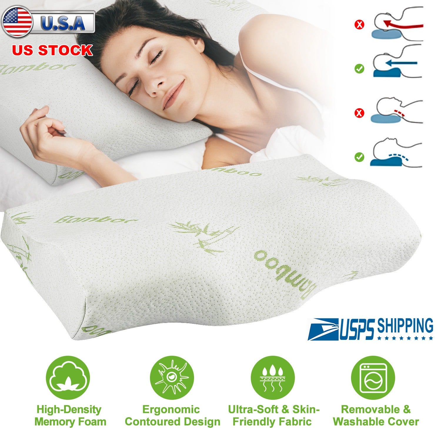 Bamboo Memory Foam Sleep Pillow Contoured Cervical Orthopedic Pillow Neck Support Breath Pillow
