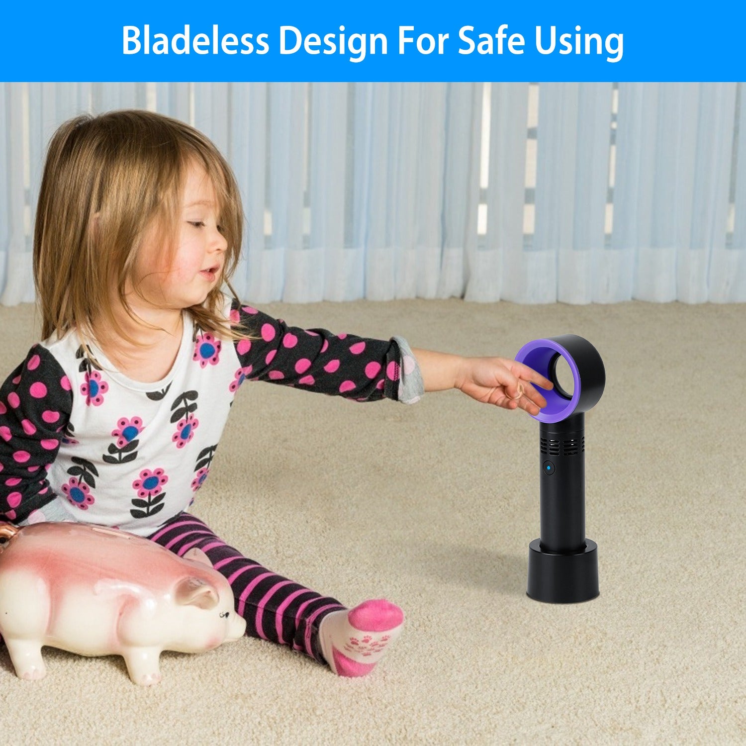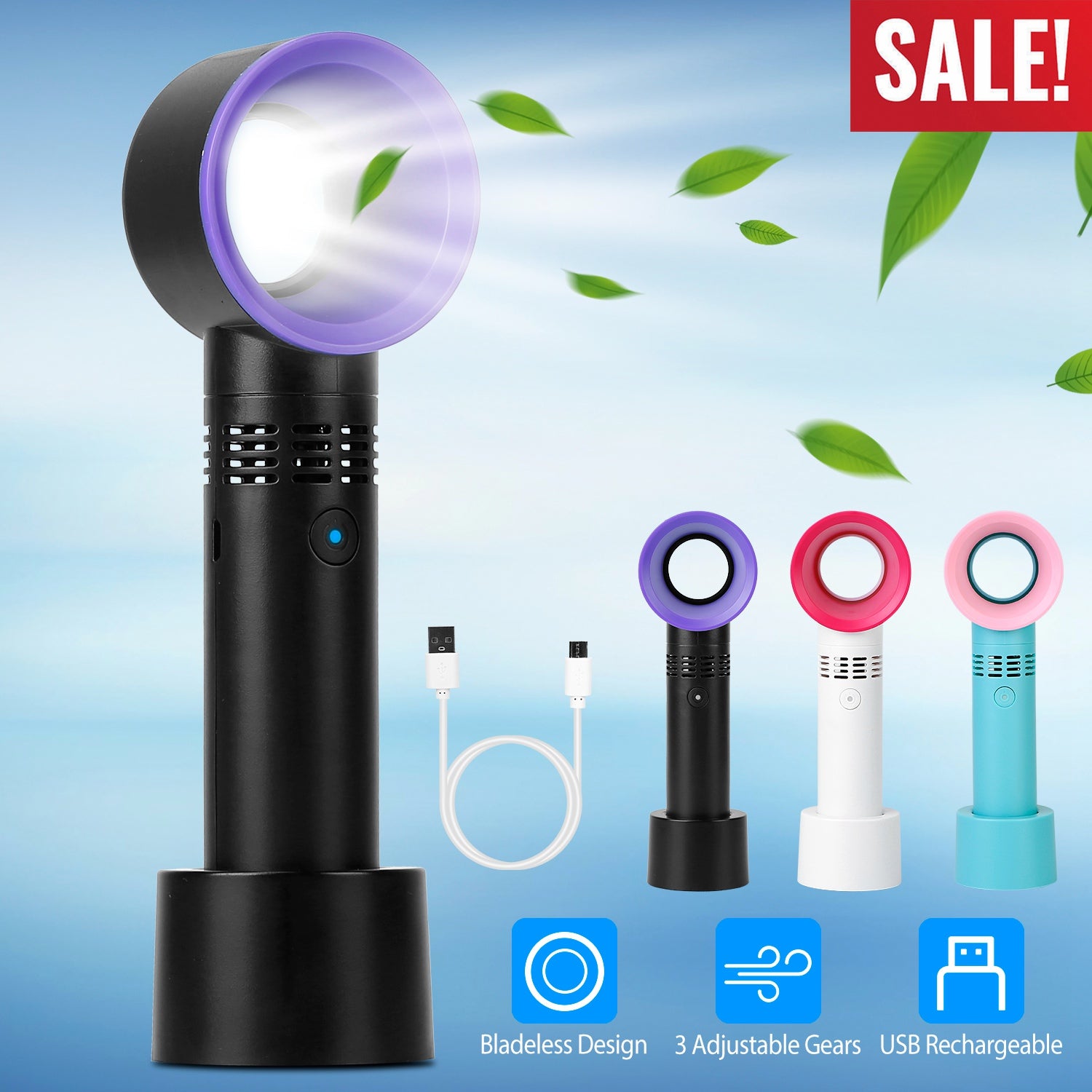Portable Handheld Bladeless Fan Rechargeable Cooling USB Fan Desktop Use Fan w/ 3 Gears LED Indicator Cooling Fan