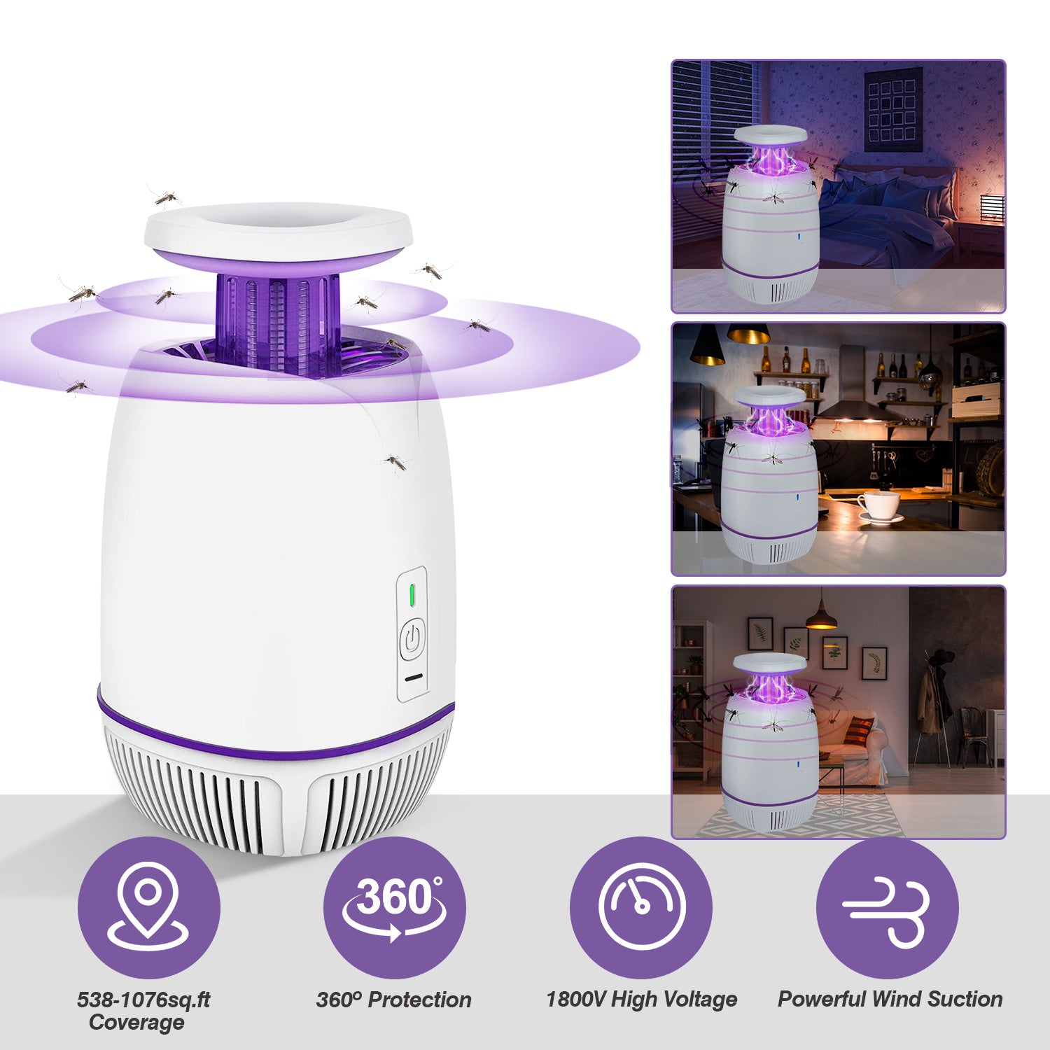 Summer is coming! Are you still fighting against the annoying mosquitoes? Our mosquito zapper is an optimal solution to protect your family from mosquito buzz and biting with up to 1076sq.ft coverage. Our mosquito zapper uses 1800V of electric shock power and powerful suction to effectively get rid of mosquitoes, gnats, fruit flies and other fly pests. Comes with a Type-C USB cable, it can be powered by a DC 5V/1A adaptor or a power bank, widely used for living room, bedroom, kitchen, basement, office, store, etc.