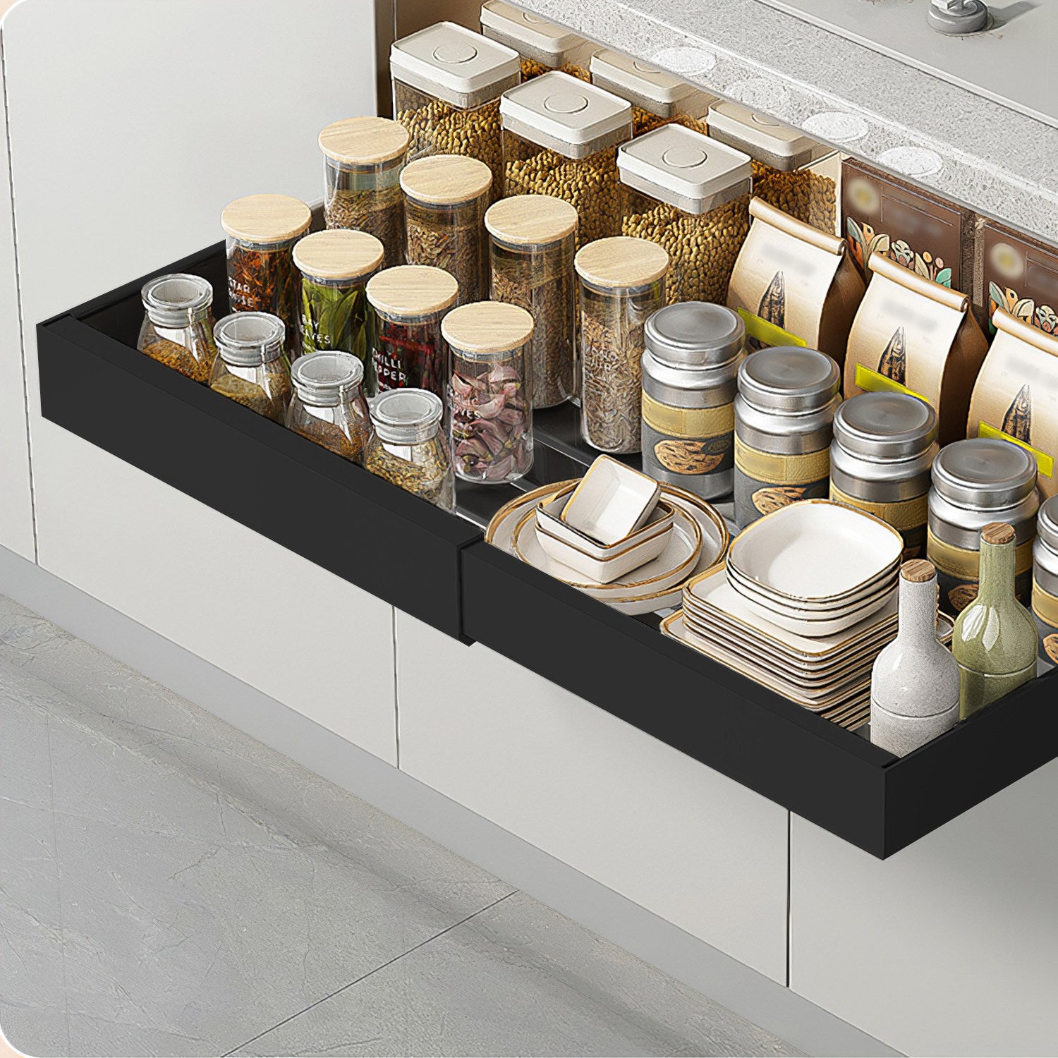 Expandable Pull out Cabinet Organizer Slide out Drawers Roll out Sliding Storage Self Carbon Steel with 12.2-20.5in Extendable Width 17lbs Max Load