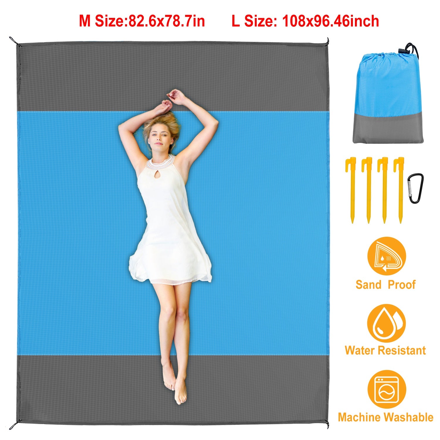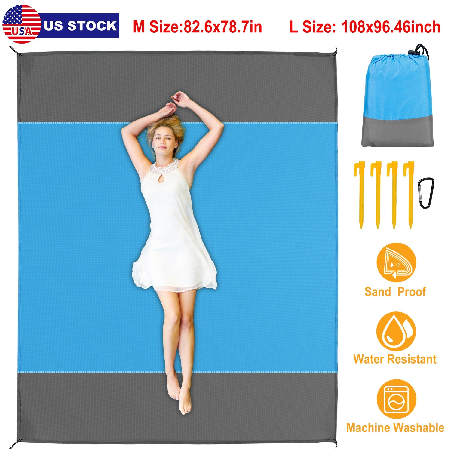 82.6x78.7in Sand Proof Picnic Blanket Water Resistant Foldable Camping Beach Mat w/ 4 Anchors 1 Carry Bag For 2-3 People